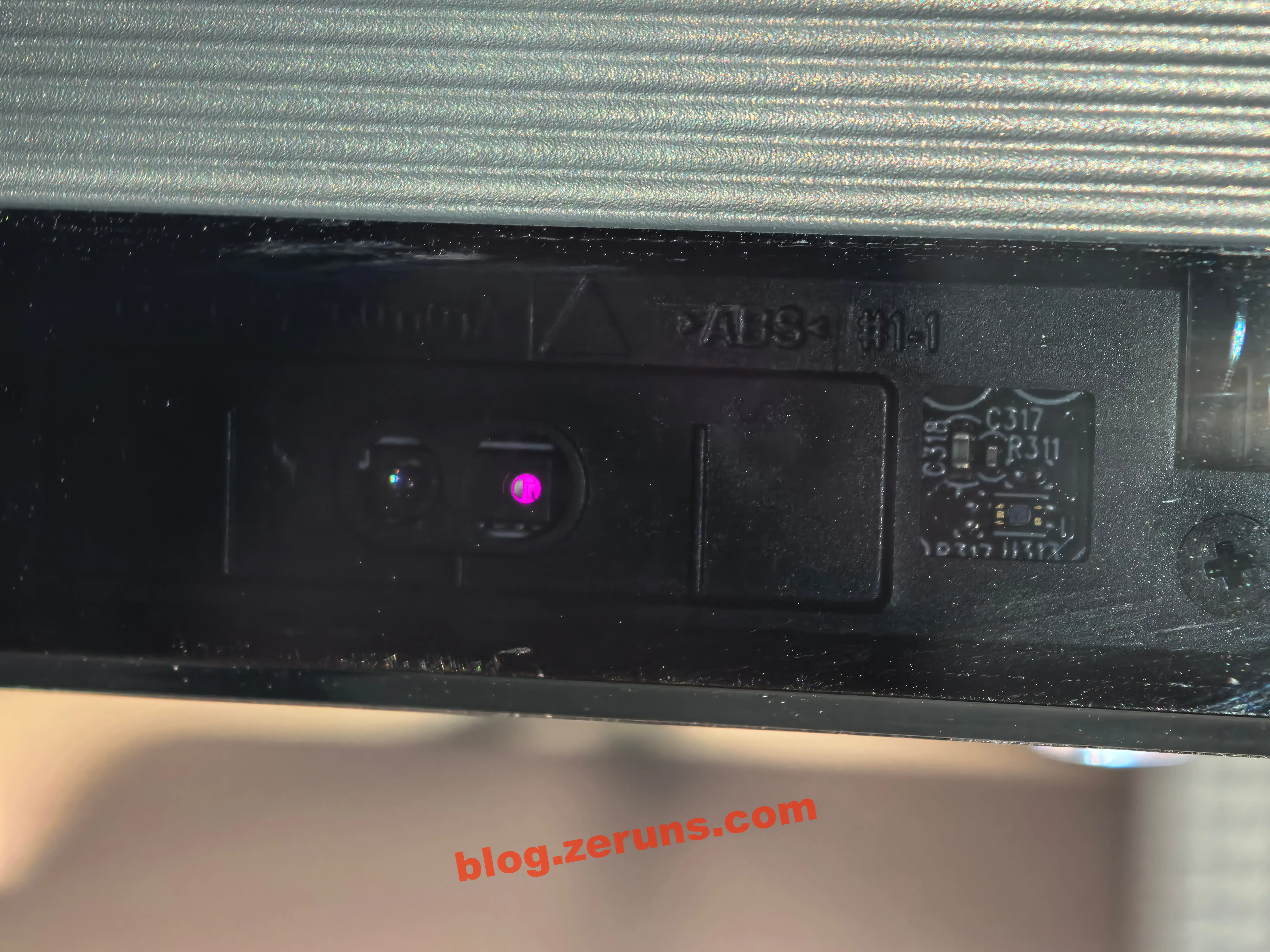 显示器底部的“小下巴”上有红外距离传感器和环境亮度传感器,“小下巴”中间是一个触摸按键,可以快速切换屏幕色彩模式。
