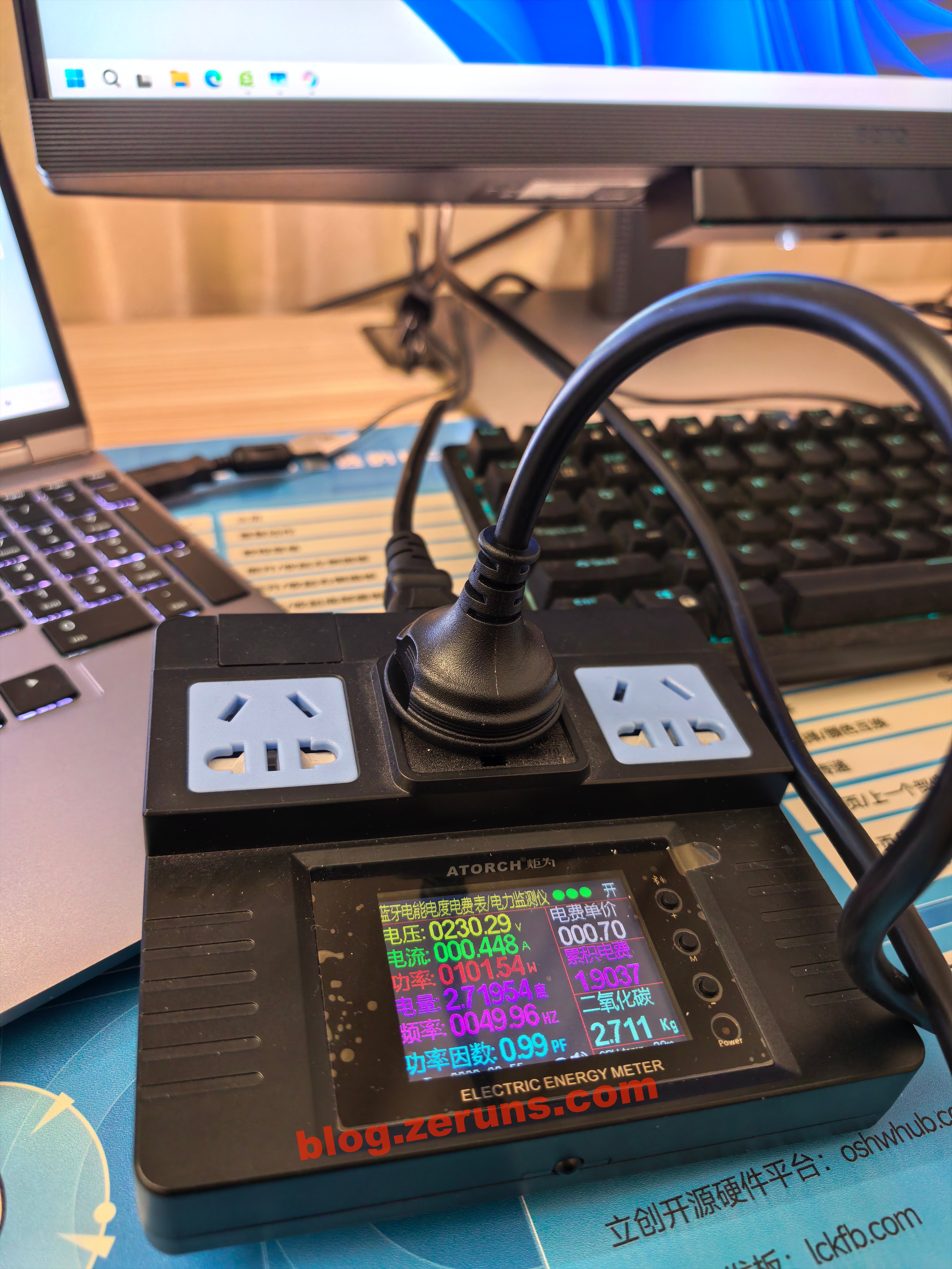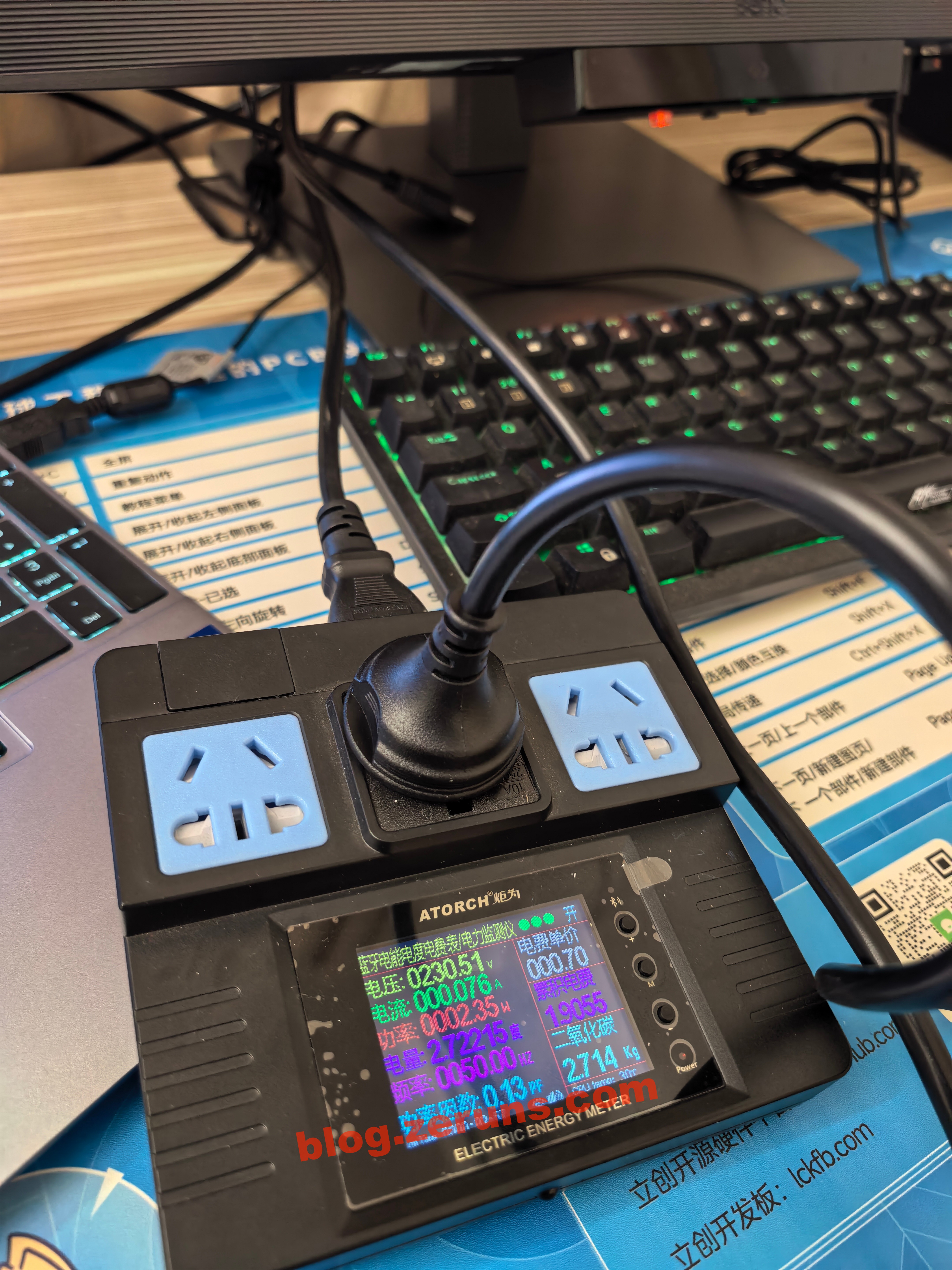 显示器C口连接笔记本时功耗在101瓦左右(笔记本大概占50瓦左右)。功率因数0.99,应该有主动式PFC电路。