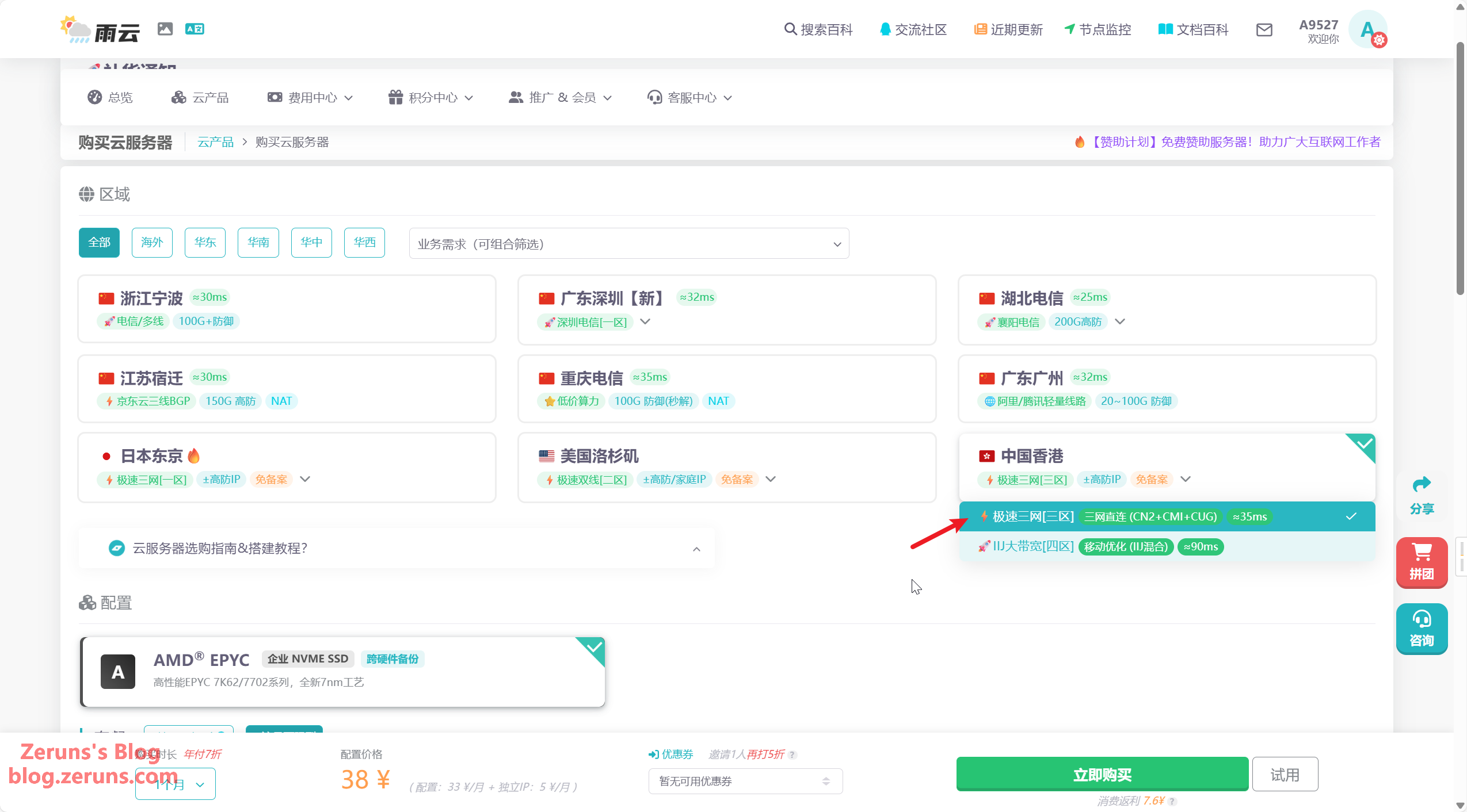 雨云优惠注册地址:https://rain.zeruns.com/?s=blog