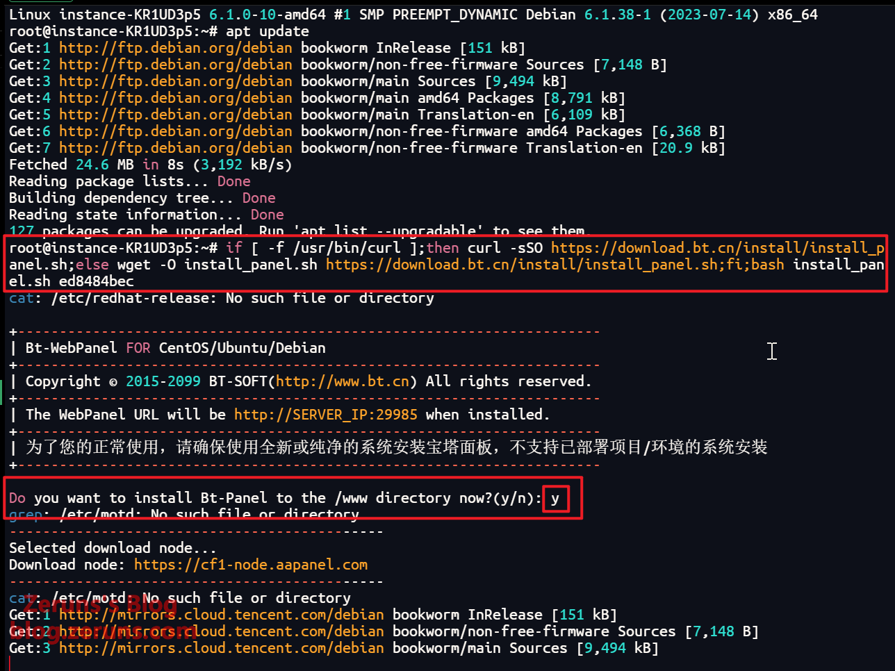 注意:境内服务器由于有可能无法访问Github而导致安装失败,需自行挂梯子进行安装,或可能因连接Github的速度过慢导致安装所需时间大大增加。