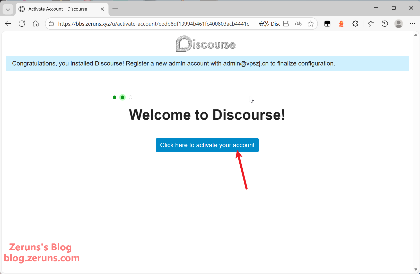 接着在浏览器地址栏输入你网站域名并打开,按照引导注册管理员账号。