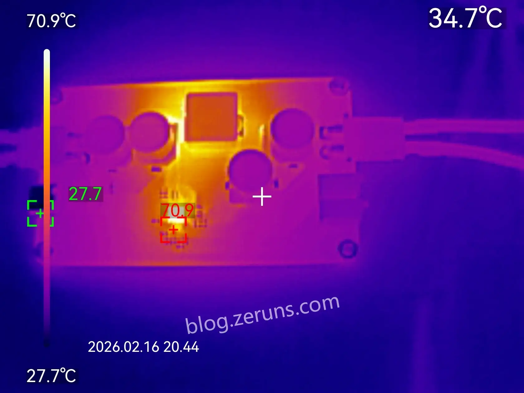 正面热成像图,SC8703芯片温度70度以上。