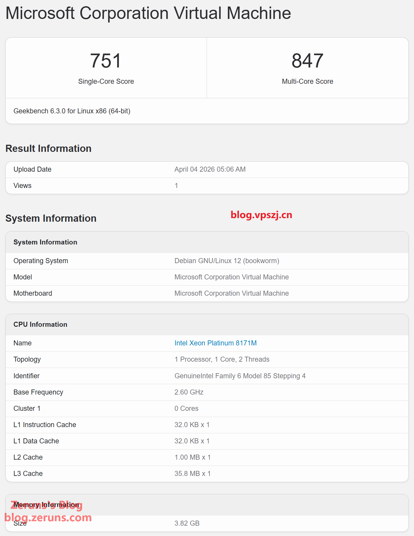 wget --no-check-certificate https://img.zeruns.com/down/Geekbench-5.4.3-Linux.tar.gz && tar xf Geekbench-5.4.3-Linux.tar.gz && cd Geekbench-5.4.3-Linux && ./geekbench_x86_64Geekbench 6