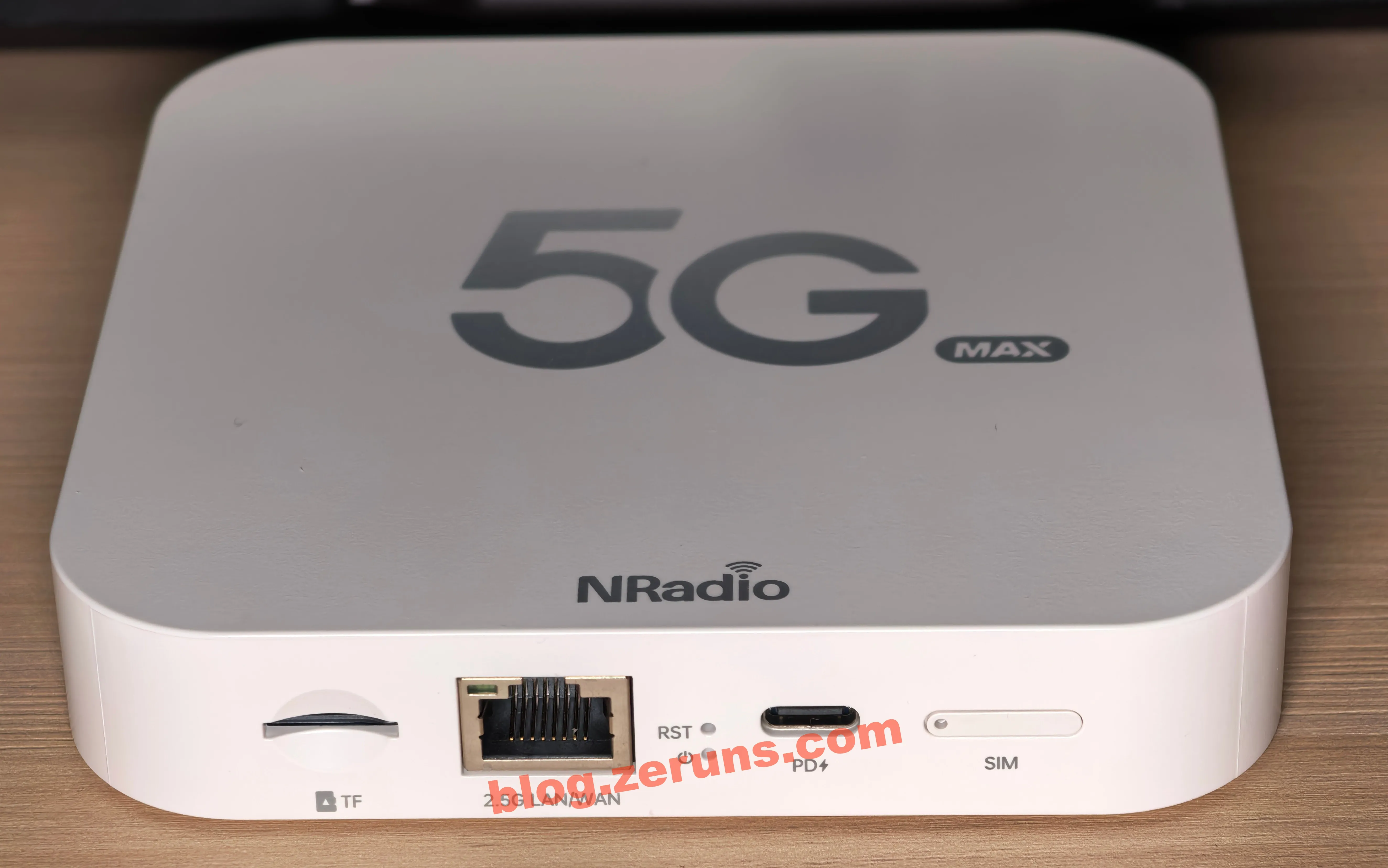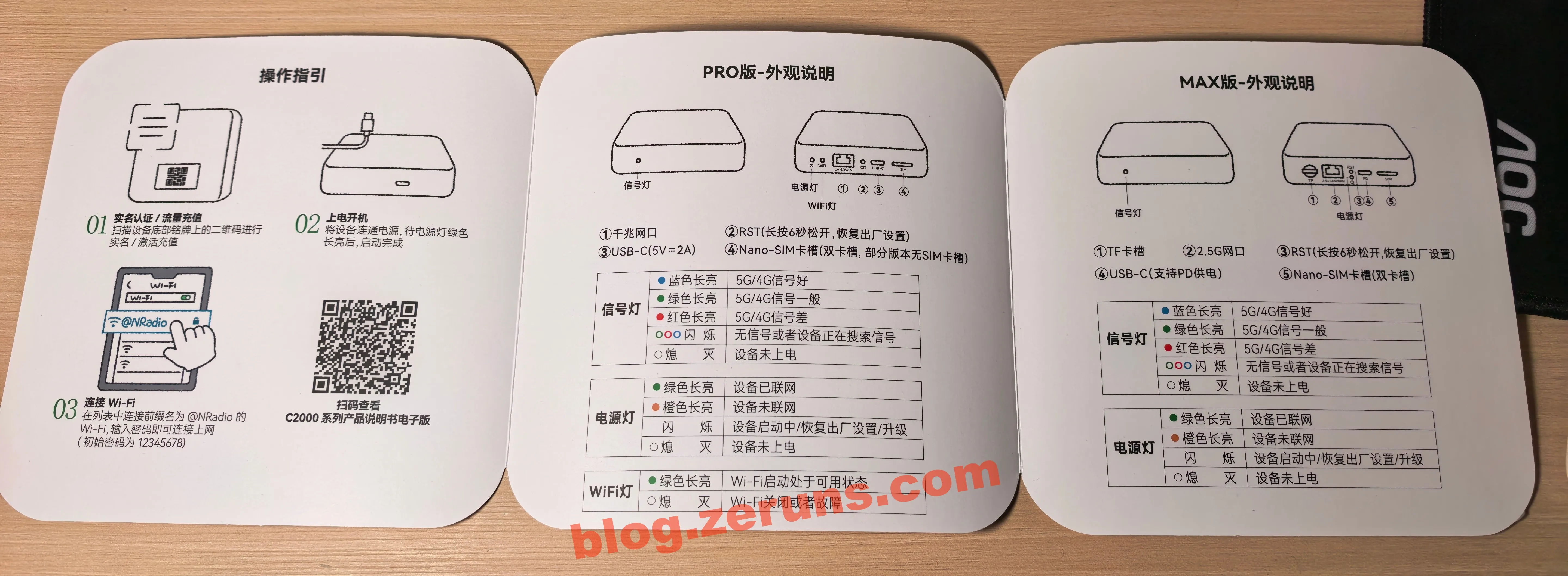 C2000MAX背面,从左到右分别是 TF卡槽、2.5G网口、RST复位键、电源指示灯、USB-C电源接口、双nanoSIM卡槽(类似手机卡槽,需要用针戳进去才能弹出卡托)。