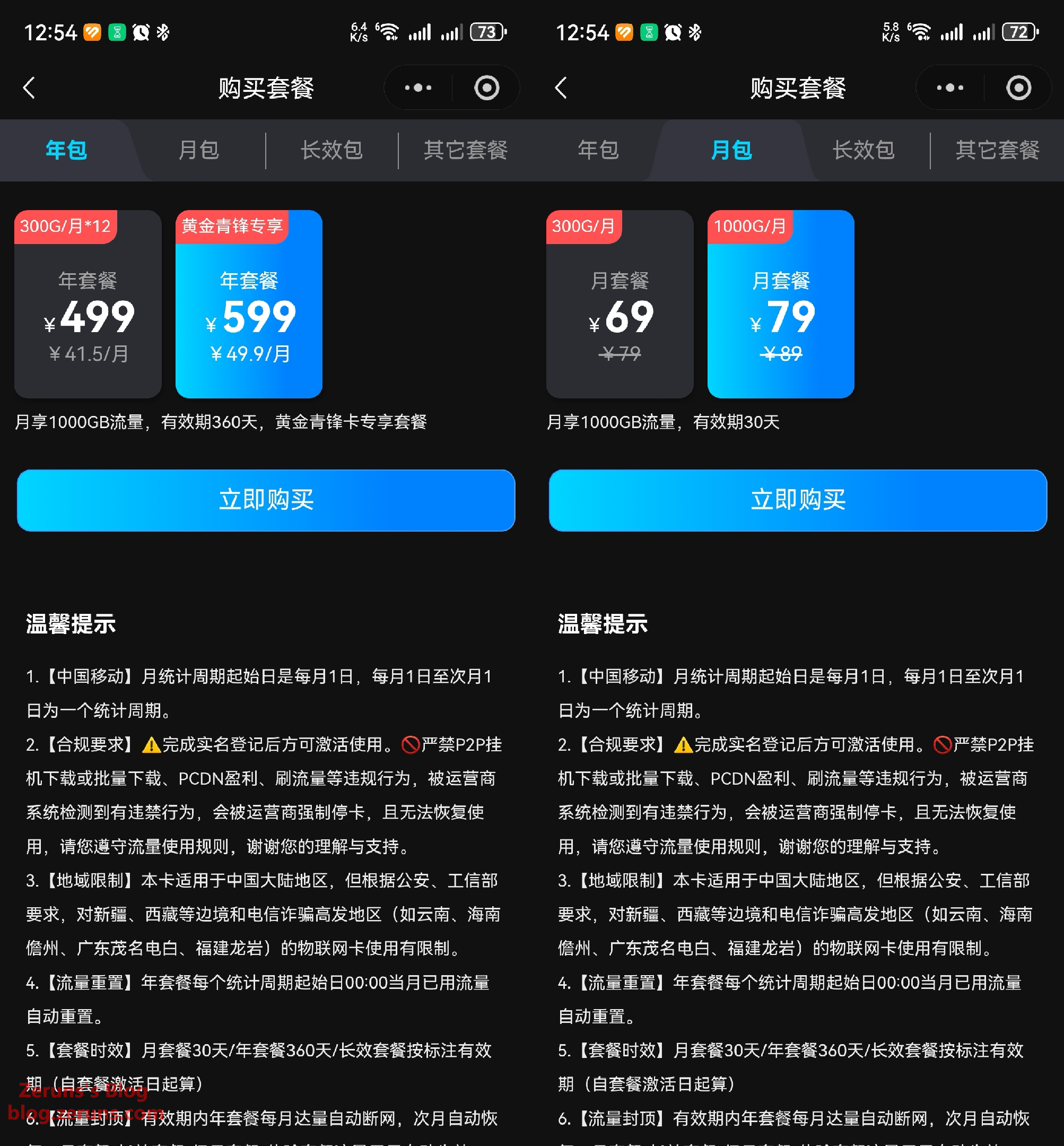 每月1TB流量,年包599元(约49.9元/月),月包79元/月,价格还不错。