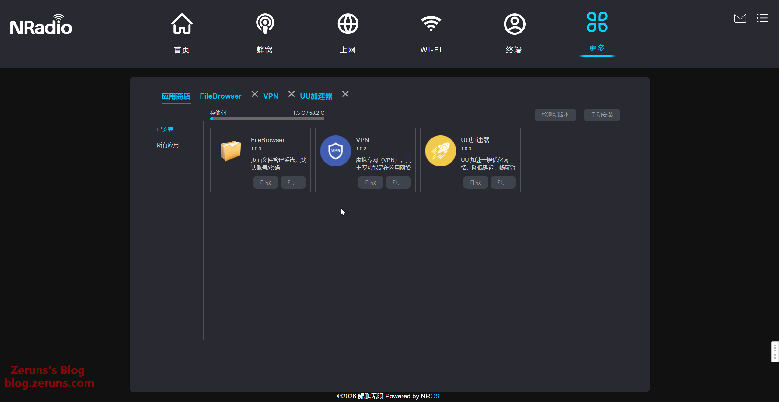 NROS就是出厂自带的系统,其实也是基于OpenWrt开发的,因为内置Flash空间比较小,所以这系统应该是裁剪的。